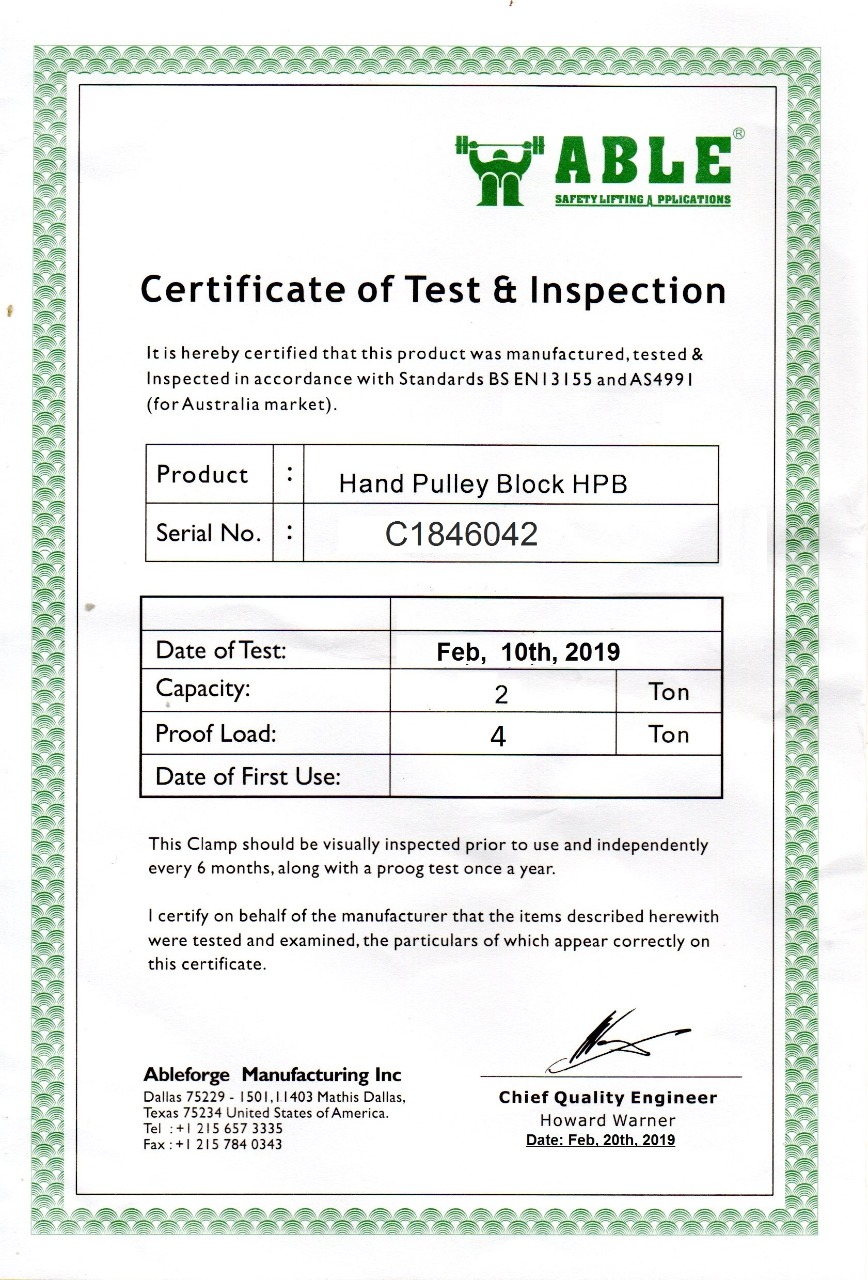 - Fabricado en acuerdo con los estándares europeos EN 13157:2003, y la directiva de maquinado 98/37/EC.