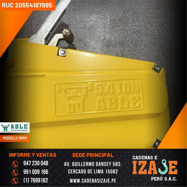 ABLEWRP no necesita ser acompañado por un tambor de cable para enrollar el derecha ya que es pequeño en tamaño y ligero en peso. Moviendo el mango izquierda a derecha, el cable pasara a través de el como si se jalara con la mano, es decir por medio de dos mandriles equipadas en el interior del cuerpo .Este equipo es muy fácil de operar no se requiere de experiencia.